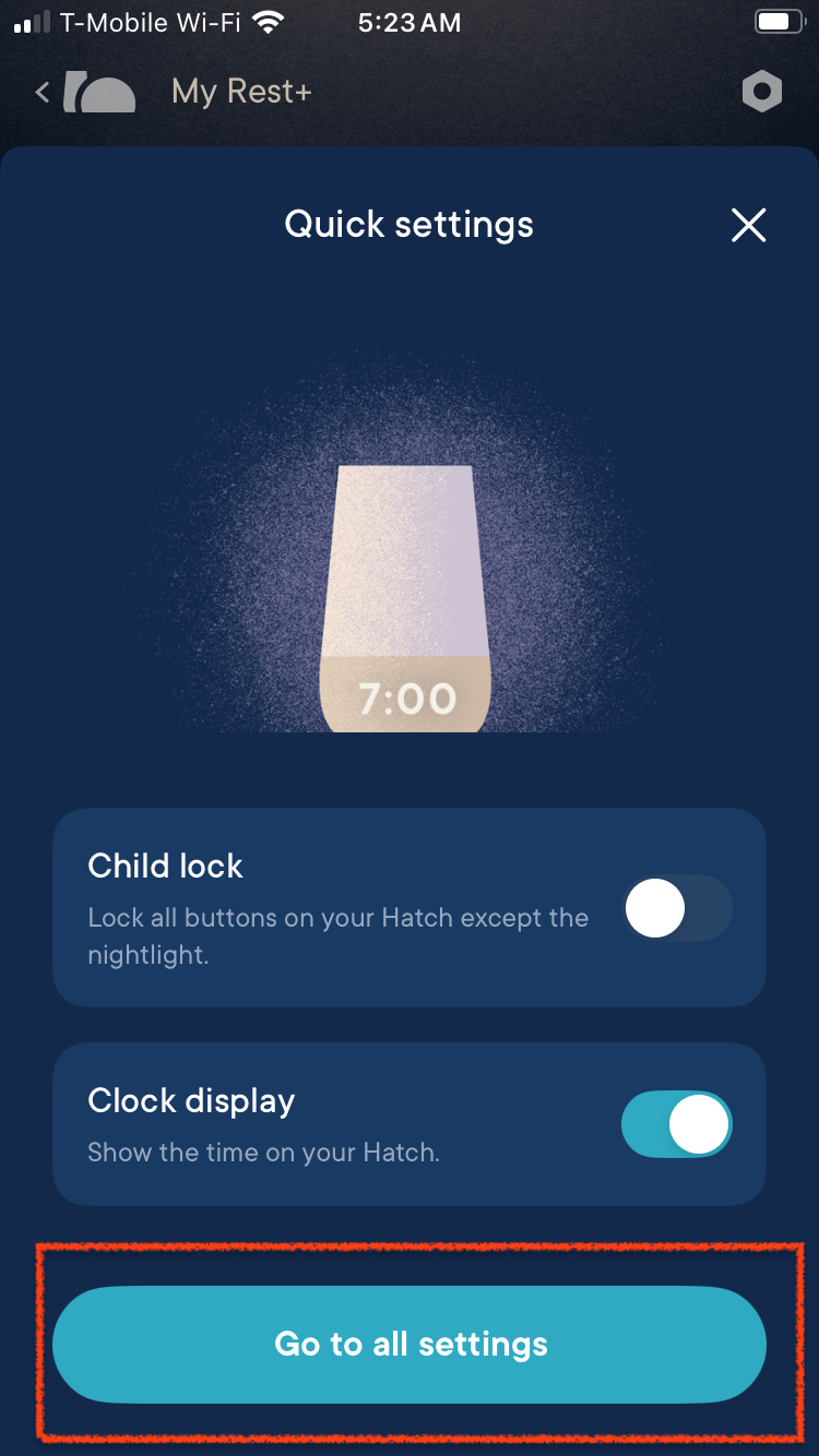 - First, open the Hatch Sleep app and connect to your Rest 2nd gen.