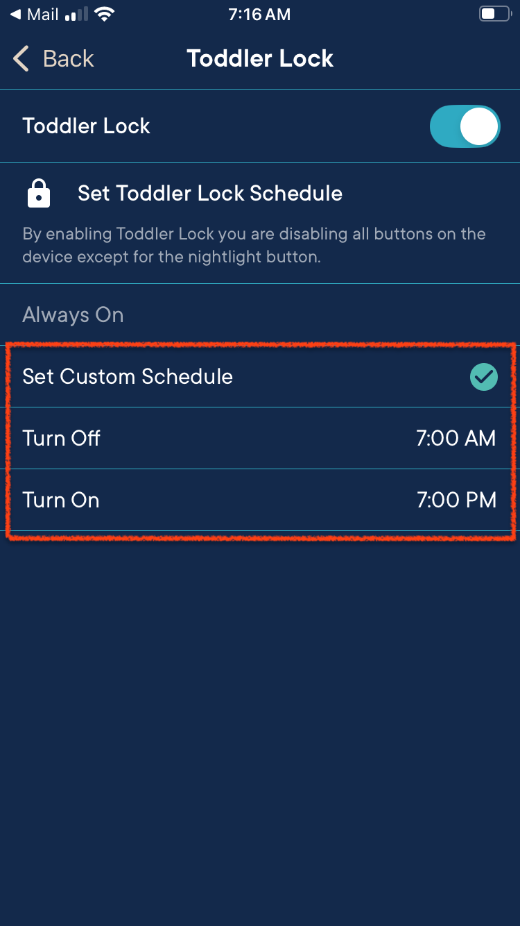 Tap on the "Set Custom Schedule" option to customize the time your "Child Lock" is turned on