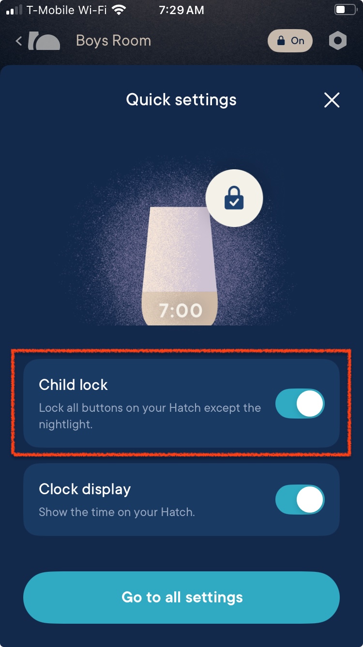 Curious little hands wanting to tap the touch ring/buttons on your Rest+ 2nd Gen? Have peace of mind that their routine will stay the same and not be disrupted by turning on a Child Lock! This will disable the use of your touch ring and the volume/brightness buttons on the device itself. By design, the nightlight button on the back is not affected by the Child Lock. This is so you can easily turn it on in case your little one needs you at night!