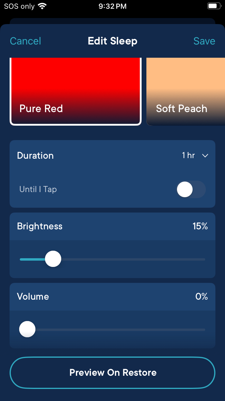 - Attempt to play a sound by turning on your routine from your Restore 2 directly.