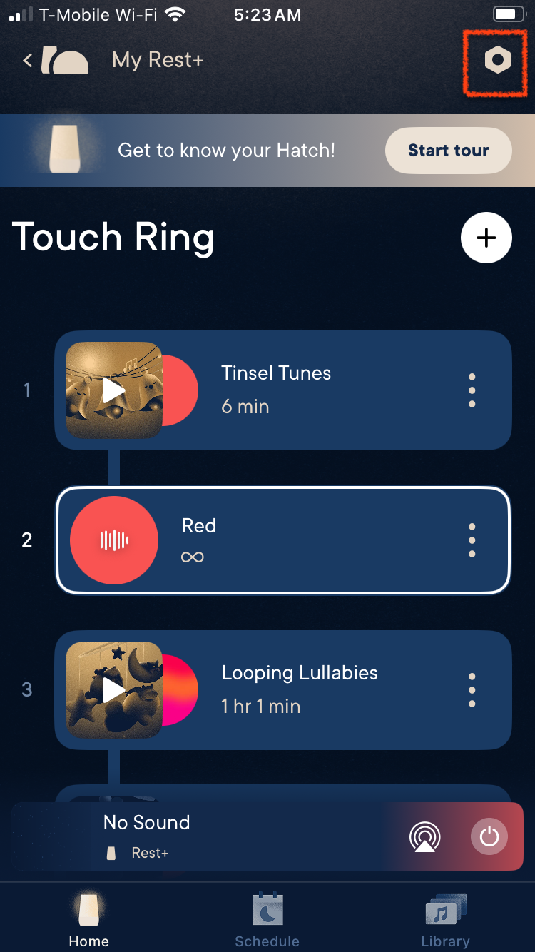 - In the top right corner of the Home Screen for your Rest 2nd gen, tap the settings (gear) icon in the upper right corner of the page.