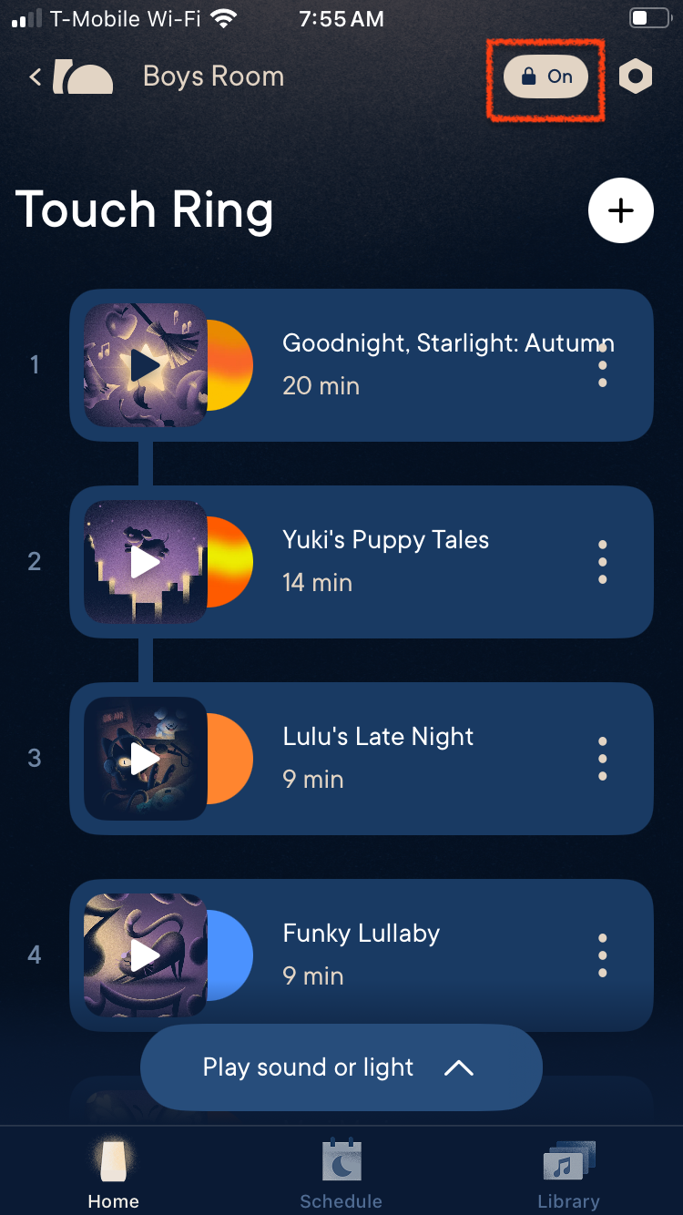 Curious little hands wanting to tap the touch ring/buttons on your Rest 2nd Gen? Have peace of mind that their routine will stay the same and not be disrupted by turning on a Child Lock! This will disable the use of your touch ring and the volume/brightness buttons on the device itself. By design, the nightlight button on the back is not affected by the Child Lock. This is so you can easily turn it on in case your little one needs you at night!