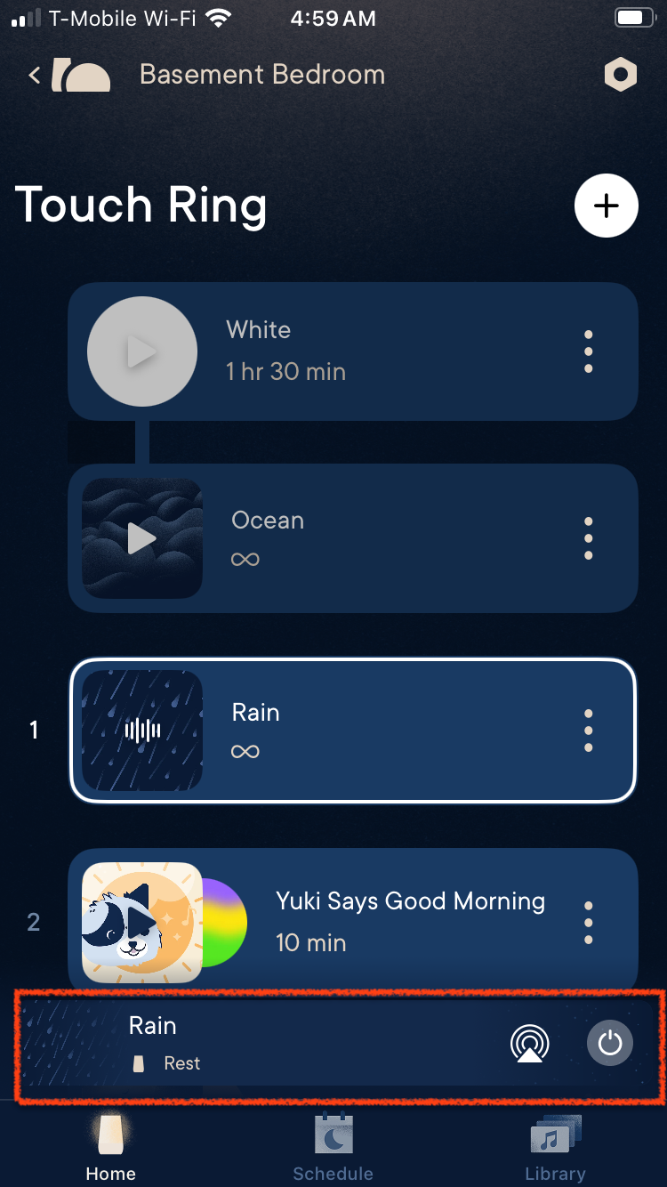 The player is a small rectangular box in the lower portion of the Hatch Sleep app that displays the sound play and allows you to make adjustments to the sound and light combination that is currently playing on your Rest 2nd gen quickly.