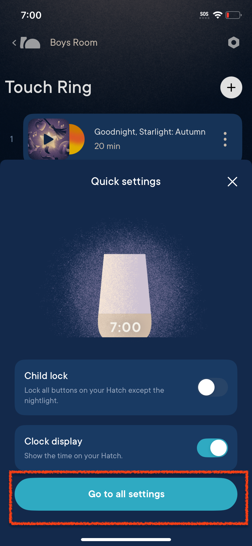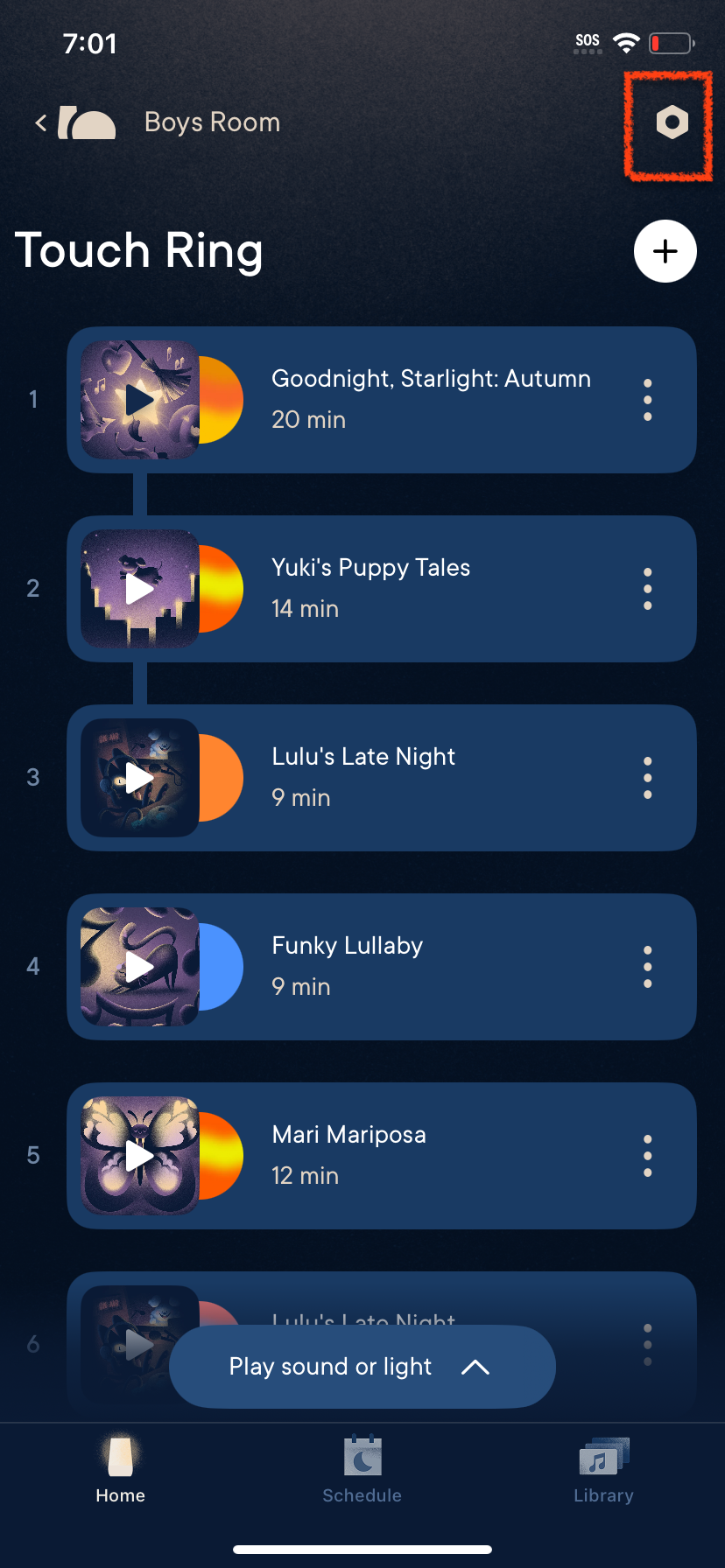 - Open the Hatch Sleep app and tap on the gear icon in the upper right corner of the app