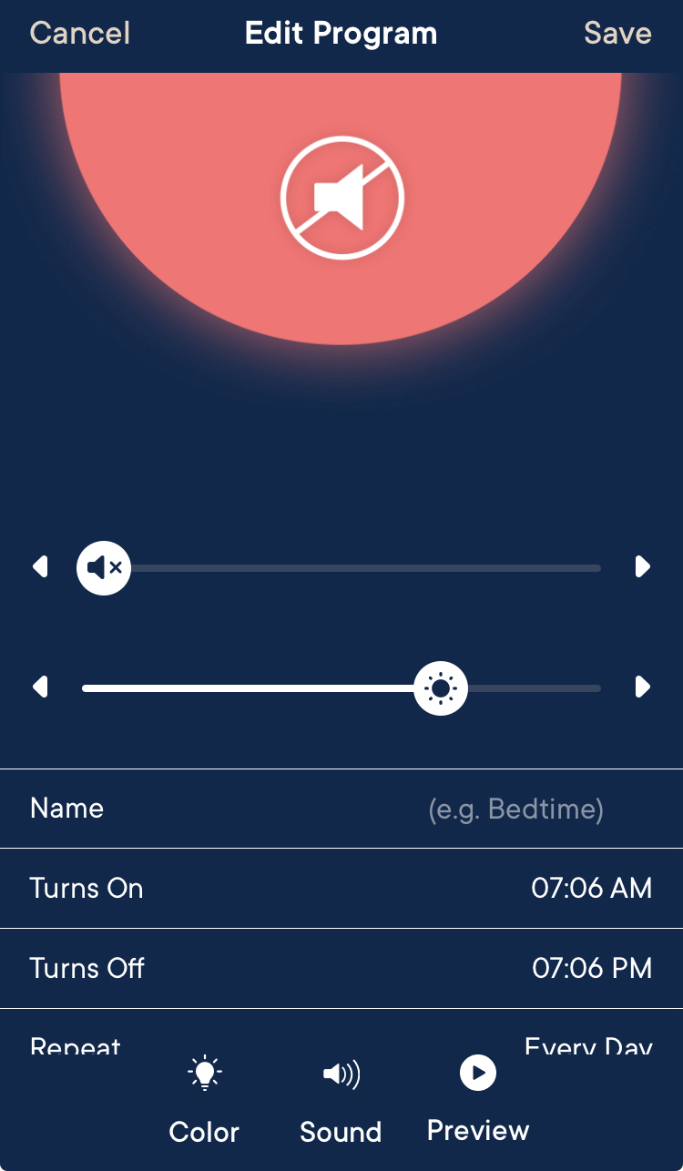 First, you will want to double-check your settings to make sure your volume is turned up and that you have a sound selected. If your program selection or player appears similar to the one below, make sure to select a sound and adjust the volume slider if necessary.
