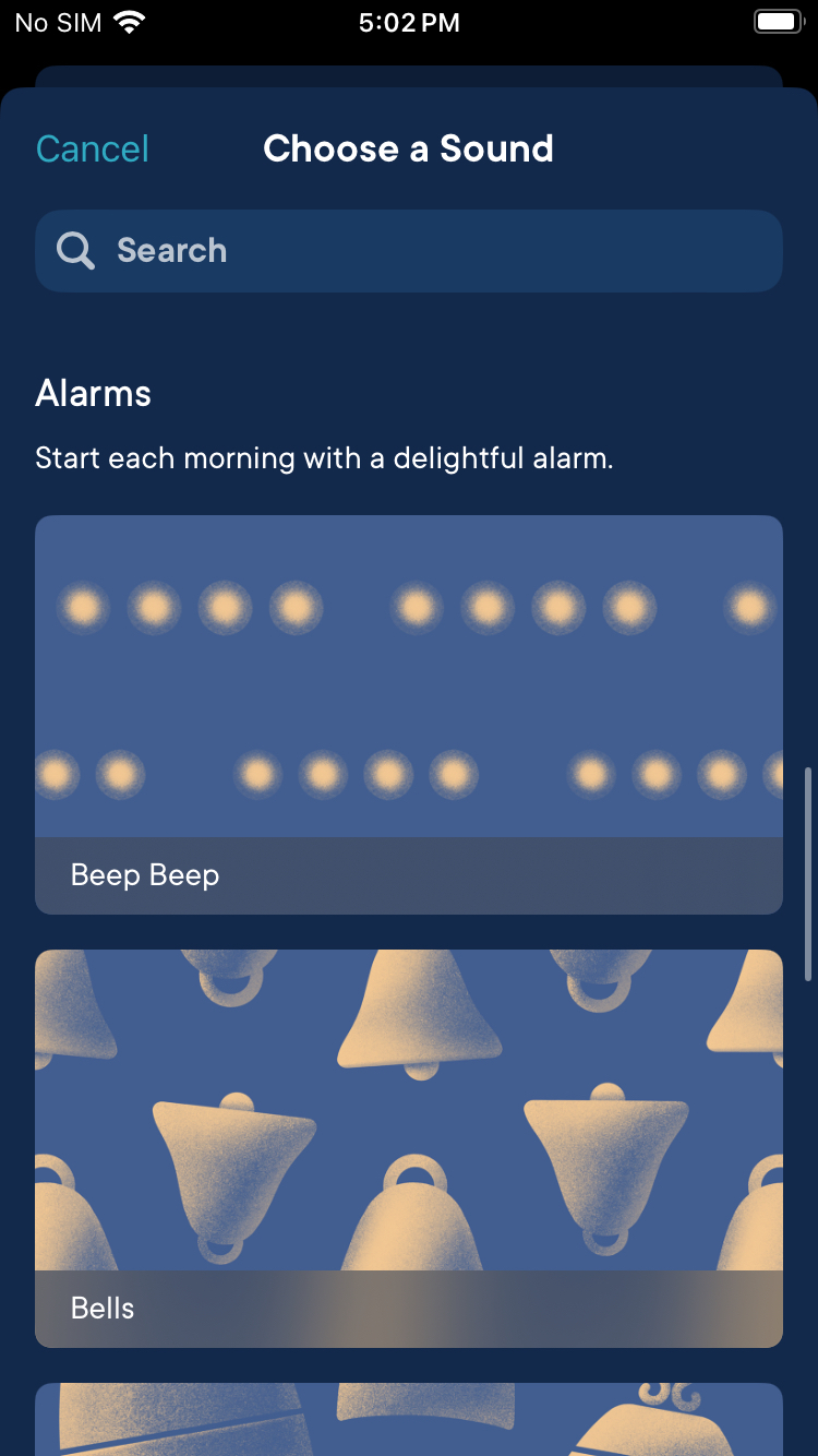 In addition to the alarm sounds that come pre-loaded on the Restore, a membership to Hatch+ will offer additional content that you can use to start your day! You can view these options when setting up or editing a sunrise alarm - you swipe right to "see more" options.