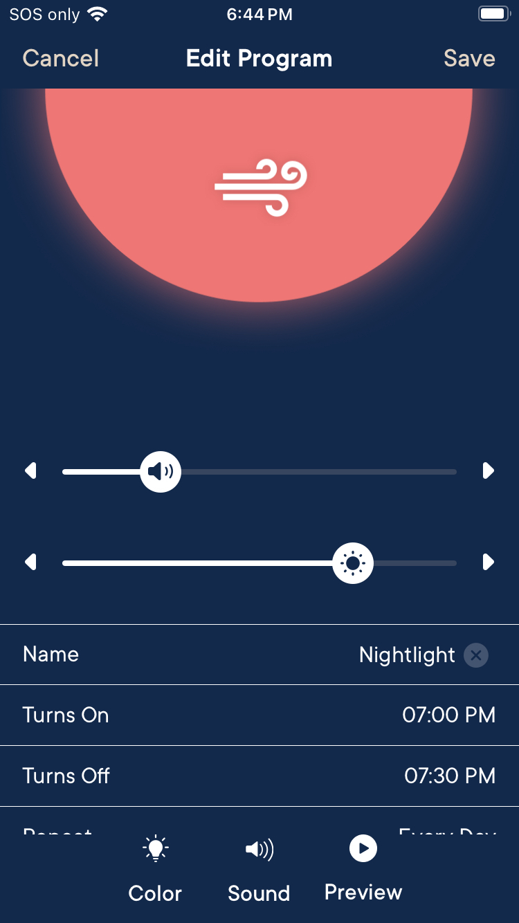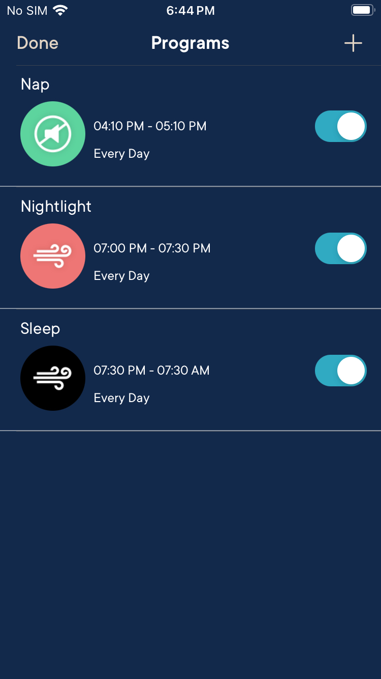Once completed, your nightlight/sleep programs should appear similar to the ones shown here.